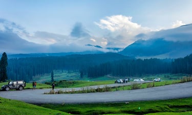 At 2,730 meters (8,957 ft) above sea level in Budgam district, about 42 km (1.5–2 hrs) from Srinagar, Doodhpathri is an alpine meadow known for its lush pastures, pine forests, and the gushing Shaliganga River. Its name—Valley of Milk—comes from a local legend that the water flowing here looks milky white when it strikes the rocks. Doodhpathri remains an offbeat, serene escape compared to the more crowded tourist spots of Kashmir.